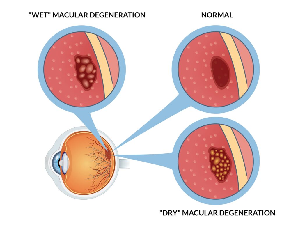 It most commonly occurs in people over the age of 50 and is classified into 2 main types: dry and wet. Early detection is crucial, as it can help prevent significant and potentially rapid vision loss.
